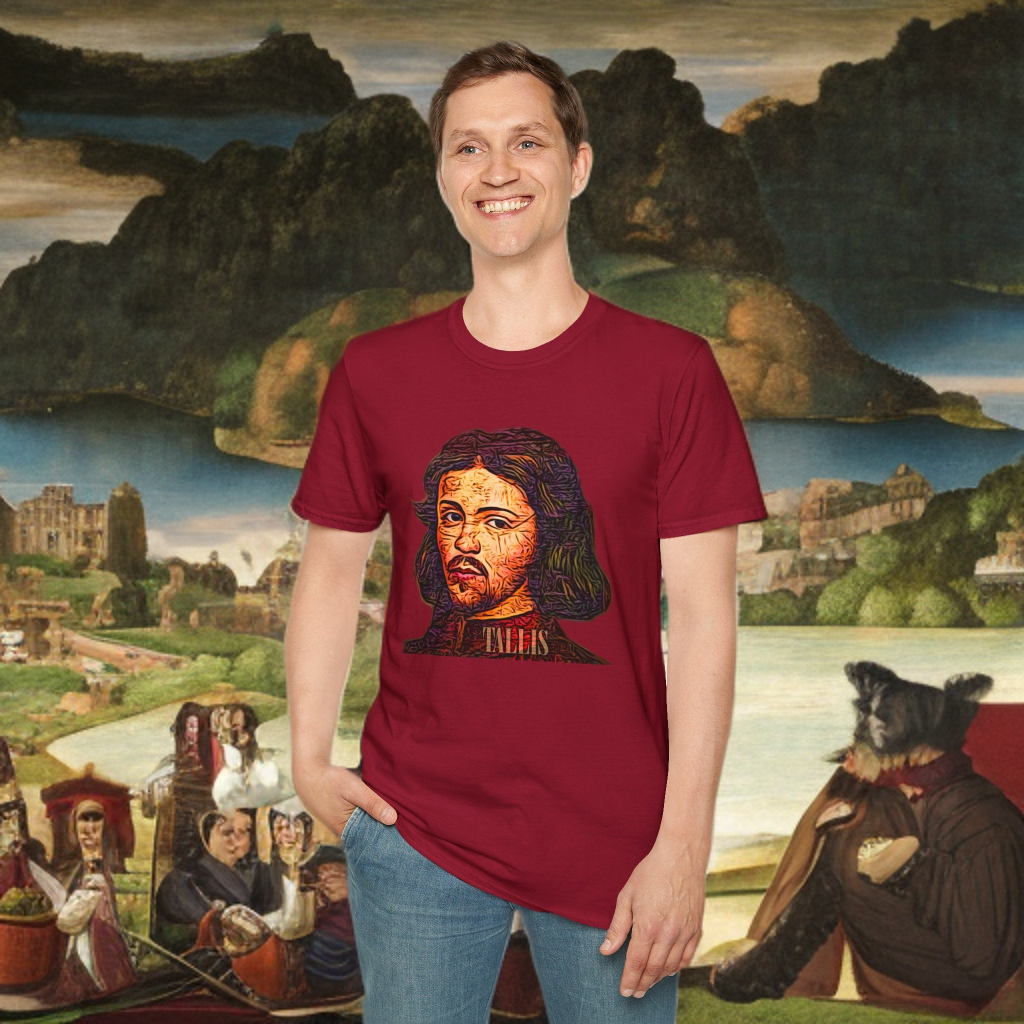 Tallis. Introducing our Unisex Softstyle T-Shirt, designed to combine comfort with a distinctive flair. This t-shirt is perfect for music enthusiasts and art lovers alike, featuring a unique, vibrant design that captures the spirit of creativity. Whether you're attending a concert, hanging out with friends, or simply enjoying a casual day out, this t-shirt is a great addition to your wardrobe. With its lightweight fabric and classic fit, you can feel confident and stylish on any occasion. Ideal for birthdays, music festivals, or just as a treat for yourself, it’s the perfect gift for anyone who appreciates unique artistic expressions.